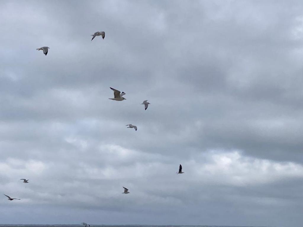 The gulls are above me